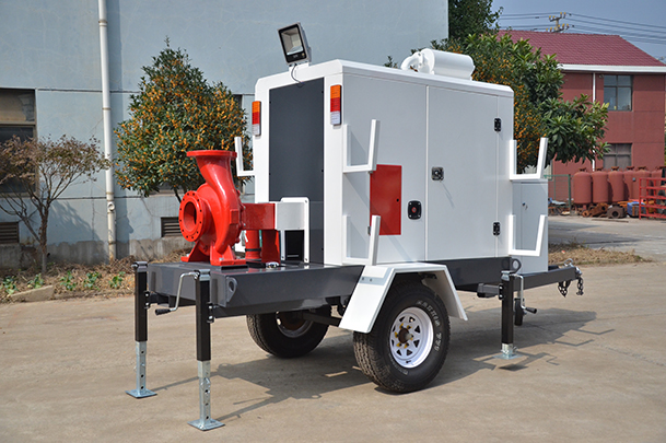 湖北荊州應急局驗收貝德科技半架式四輪移動排澇泵車